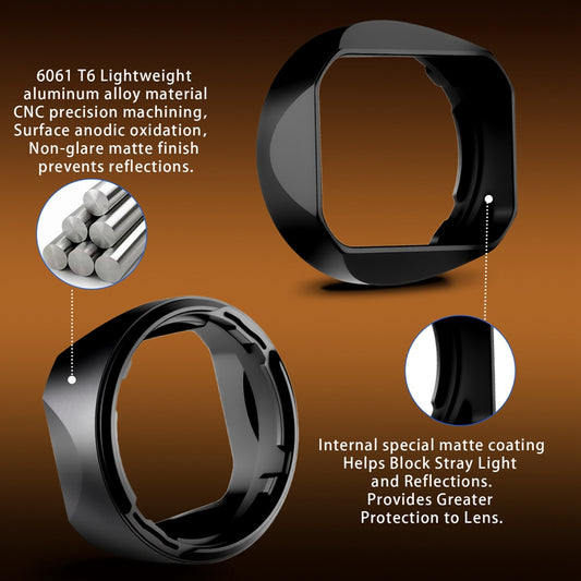 Aluminum alloy materials, machined by CNC precision machine tools,the non-glare matte finish on the inside reduces lens flare and reflection.