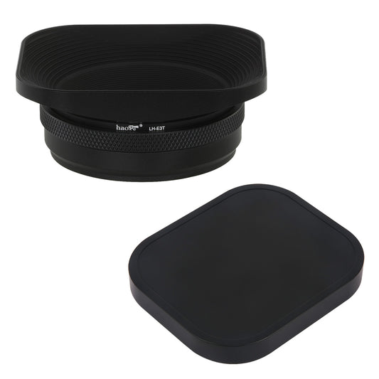 Haoge LH-E3T Square Metal Lens Hood with 49mm Adapter Ring with Cap for Fujifilm Fuji FinePix X100 X100S X100T X70 X100F X100V X100VI Camera Replaces Fujifilm LH-X100 AR-X100 LH-X70 Black