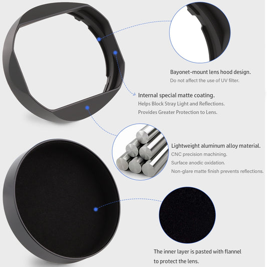 Haoge LH-X200S Square Metal Lens Hood with 49mm Adapter Ring for Fujifilm X100VI Fuji X1006 X100V X100F X100T X100S X100 X70 Fuji Photo Camera Accessories Silver