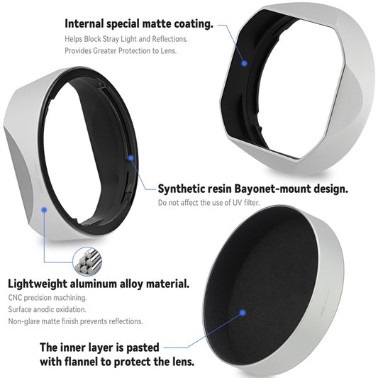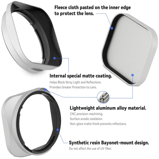 Haoge Silver Metal Square Lens Hood for Fujifilm XF33mm F1.4 R WR Lens, Fujinon XF 16-50mm,Fuji XF 23mm f/1.4 R LM WR lens Hood Shade Bayonet Mount