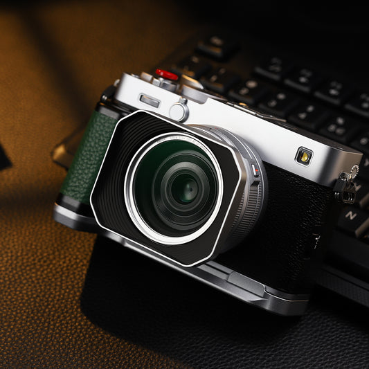 Haoge Square Metal Lens Hood with 49mm Adapter Ring for Fujifilm Fuji X100V Camera Silver