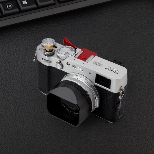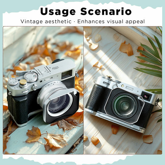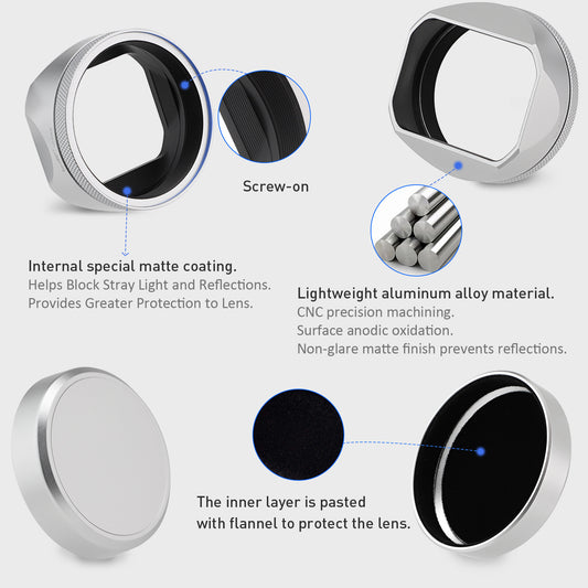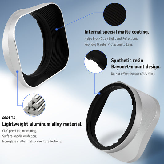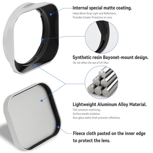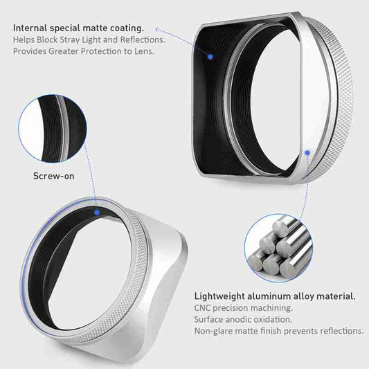 Haoge Square Metal Lens Hood with 49mm Adapter Ring for Fujifilm Fuji X100V Camera Silver