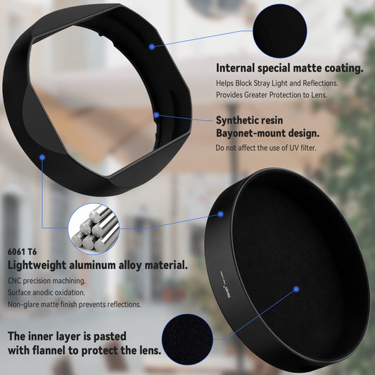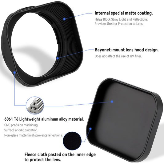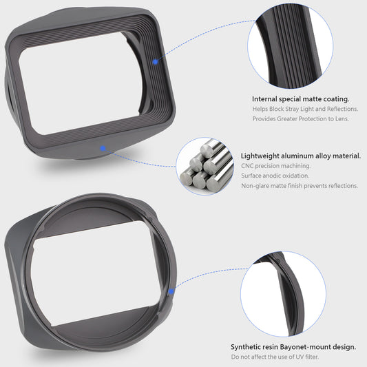 Haoge Square Metal Lens Hood for Voigtlander NOKTON 35mm f1.4, 40mm f1.4, 50mm f1.5 Aspherical II 28mm F1.5 VM Lens,Carl Zeiss Biogon T* 2/35 35mm f2 ZM, C Biogon T* 2.8/35 35mm f2.8 ZM, Planar T* 2/50 50mm f2 ZM