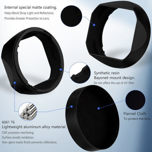 Haoge Metal Square Lens Hood for Leica Q3 Q3-43 Camera Accessories Black LH-LQ343B