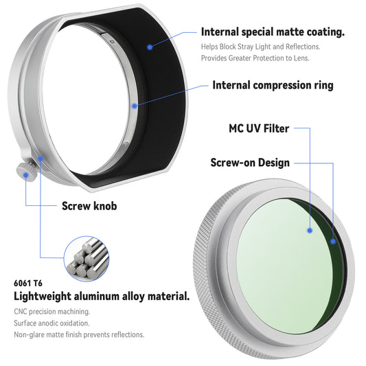 Haoge MC UV Protection Filter & Square Metal Lens Hood Lens for for Fujifilm X100 Series X100VI X100V X100F X100T Camera Accessories Waterproof HD Optical Glass UV Filter