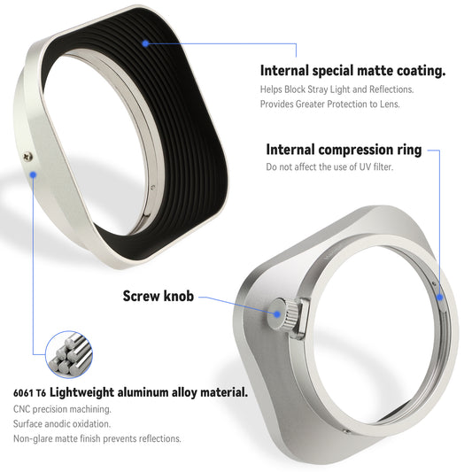 Haoge LH-F48W Square Metal Lens Hood Shade for Olympus M.ZUIKO Digital 17mm f1.8 Lens replace LH-48B Silver