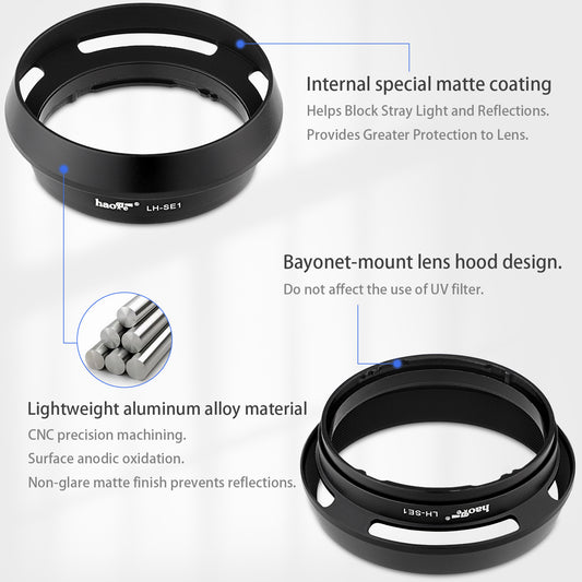 Haoge LH-RX1P Metal Lens Hood is designed for Sony Cyber-shot DSC-RX1 / RX1R / RX1R II / RX1R III Digital Camera