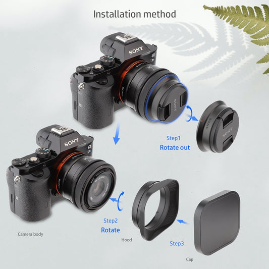 Haoge LH-S245N Bayonet Square Metal Lens Hood for Sony FE 50mm F2.5 G FE 40mm F2.5 G FE 24mm F2.8 G Lens Shade with Cap