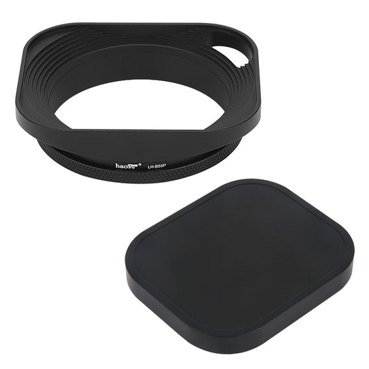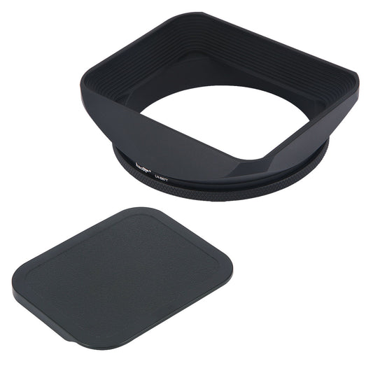 Haoge LH-B55P 55mm Square Metal Screw-in Lens Hood Hollow Out Designed with Cap for Leica Rangefinder Camera with 55mm E55 Filter Thread Lens Black