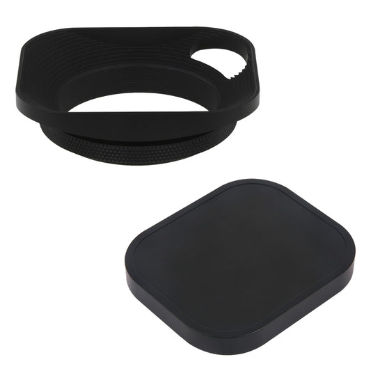 Haoge LH-E2P 49mm Square Metal Screw-in Lens Hood Hollow Out Designed with Cap for Leica Rangefinder Camera with 49mm E49 Filter Thread Lens Black