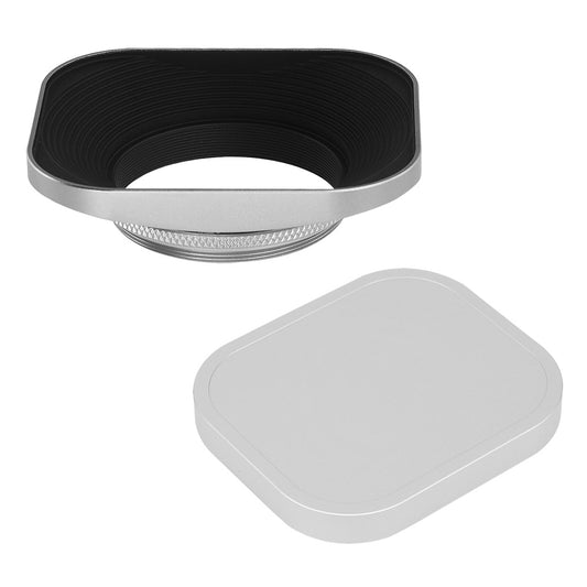Haoge LH-W39T 39mm Square Metal Screw-in Lens Hood with Cap for Leica Elmarit-M 28mm f/2.8 E39 ASPH, Summicron-M 35mm f2 E39 ASPH, Fujifilm Fujinon 60mm f/2.4 R Macro, Fuji 27mm f/2.8 Lens Silver