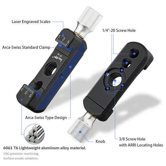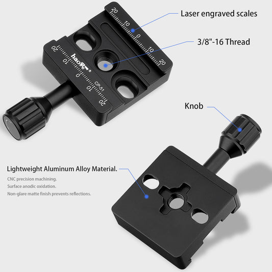 Haoge CP-38 DSLR and Mirrorless Quick Release Clamp and Plate for Arca-Type Standard with 1/4” Thread 3/8” Locating Hole NATO Rail (ARRI-Style Mount)