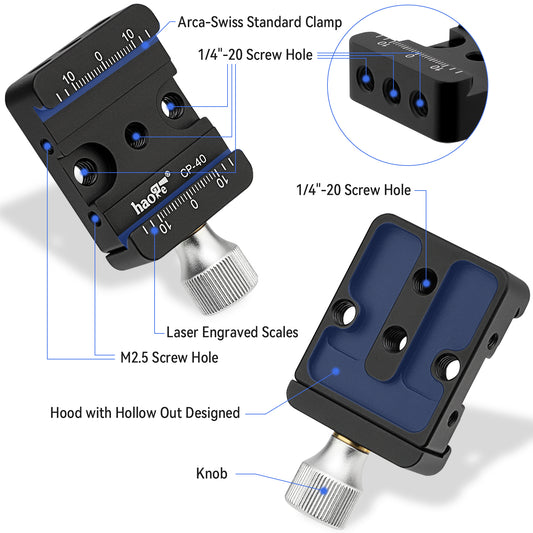 Haoge CP-40 DSLR and Mirrorless Quick Release Clamp for Arca-Type Standard Conversion Heighten riser Compatible with DJI Ronin S/SC ZHIYUN Crane Series Weebill S Gimbal Manfrotto Tripod Ball Head