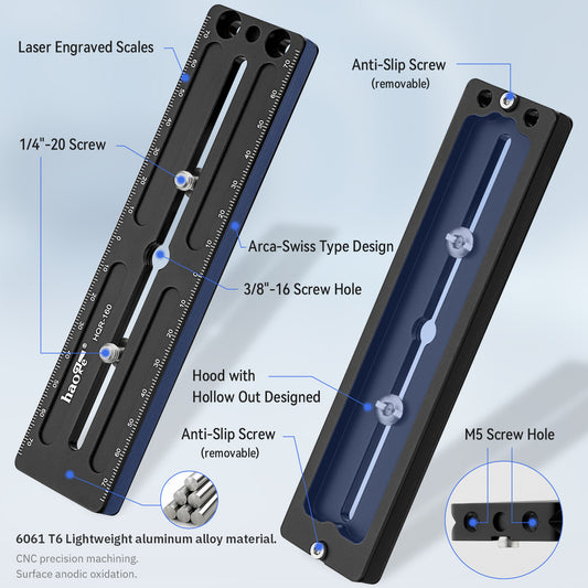 Haoge HQR-160 160mm Multi-Purpose Long Quick Release Extender Rail Sliding Plate for Camera Tripod Ballhead Clamp fit Benro Arca Swiss Sunwayfoto