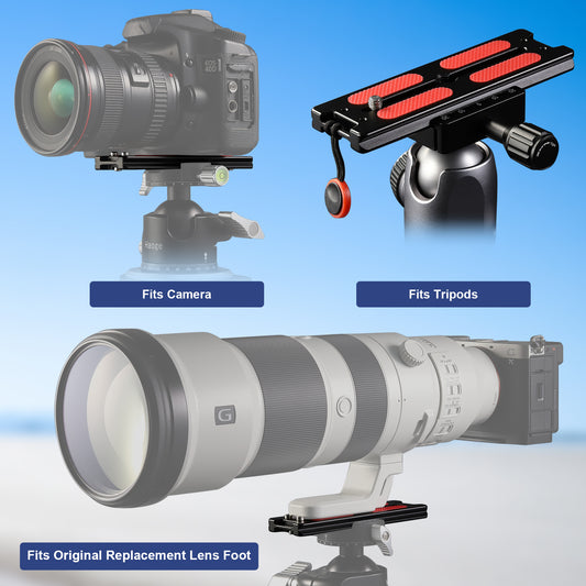Haoge HQR-110 Tripod Arca Plates 110mm Universal Arca Swiss Quick Release Plate for Canon RF 200-800mm F6.3-9 IS USM Lens Tripod Ball Head with Hand-Adjustable Stainless Steel Screw of 1/4" and 3/8" Built-in Strap hole (New Version)