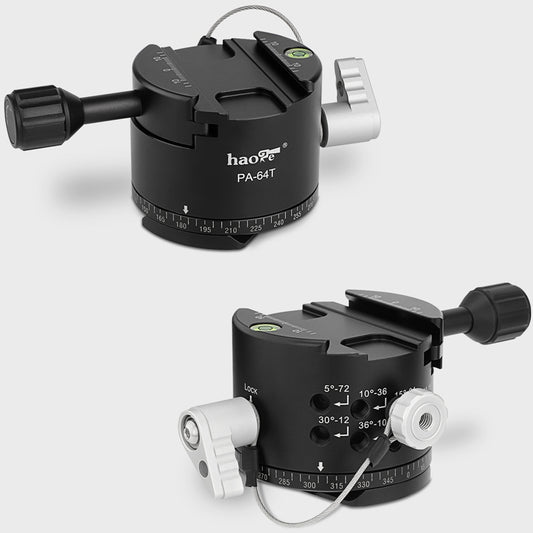 Haoge PA-64T 64mm Panoramic Panorama Pano Indexing Index Rotator Tripod Monopod Head - 10 Detent Interval Quick Release Clamp fit Arca Swiss