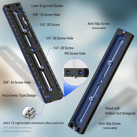 Haoge 220mm Multi-purpose Long Quick Release Extender Rail Sliding Plate for Camera Tripod Ballhead Clamp fit Benro Arca Swiss Sunwayfoto