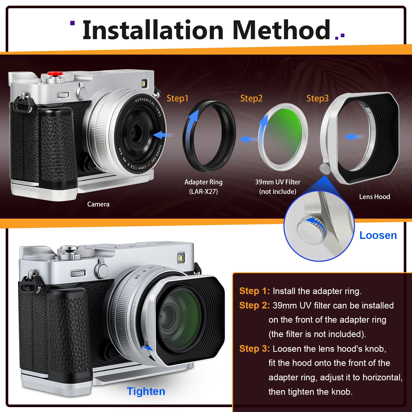 Compatible with Lens:39mm Filter Thread Lense