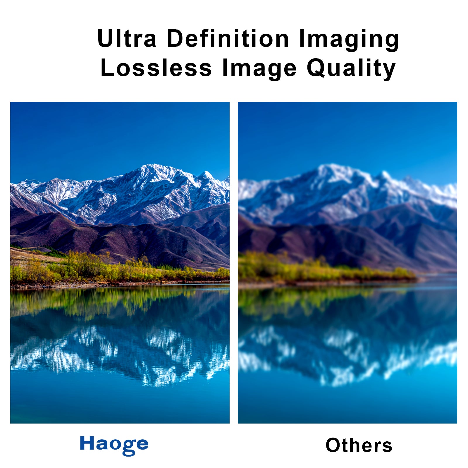 The Haoge UV filter features critically sharp B270 HD Optical Glass,The double sided of Multi Waterproof Nano Coated make the filter water repellent, scratch resistant, oil proof, and anti fingerprint.and reflections while providing over 99.5% light transmission.