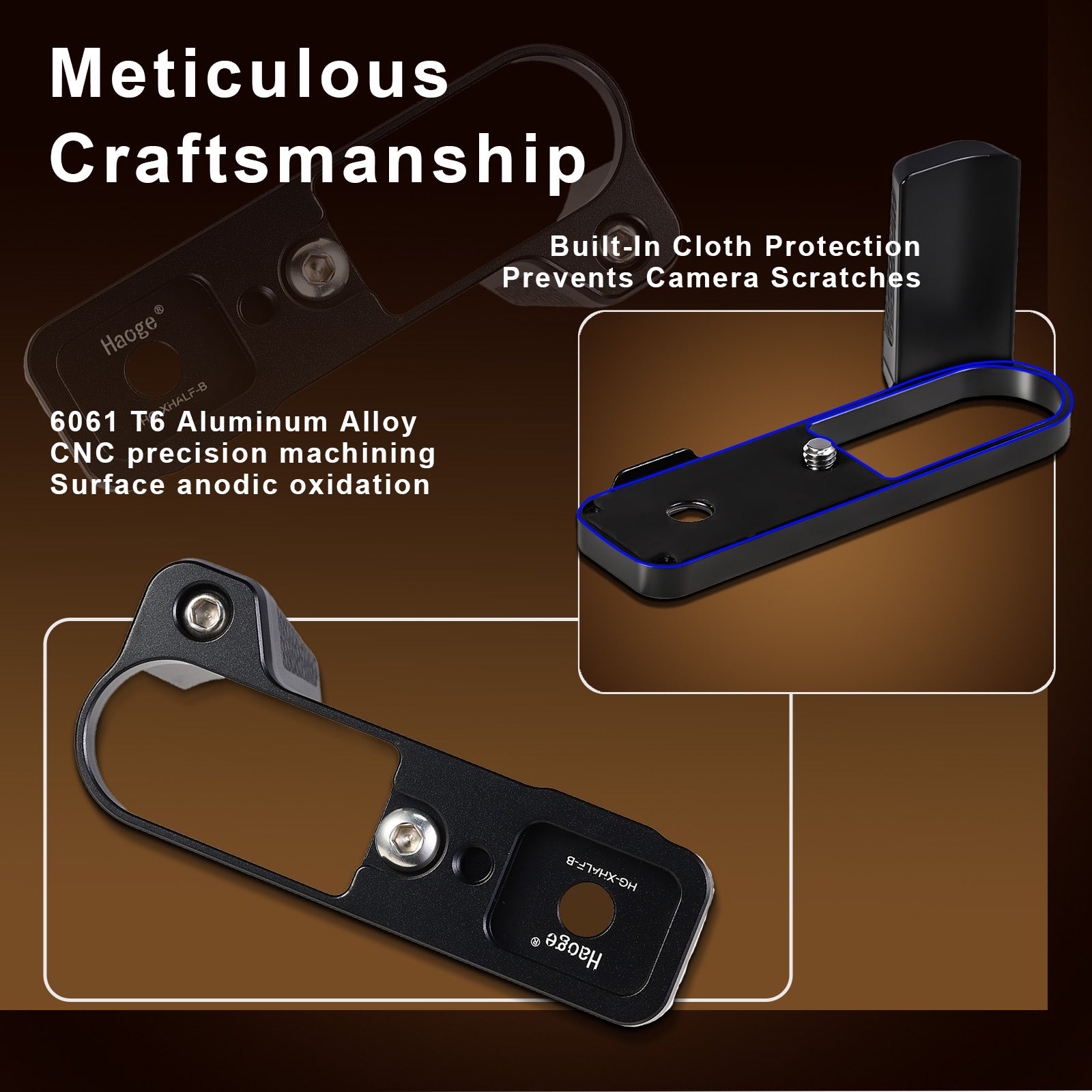 Haoge Camera Bracket Holder for Fujifilm X Half Camera Body HandGrip X-Half L-Shape Grip Bracket Silver Quick-Release plate HG-XHALF-B