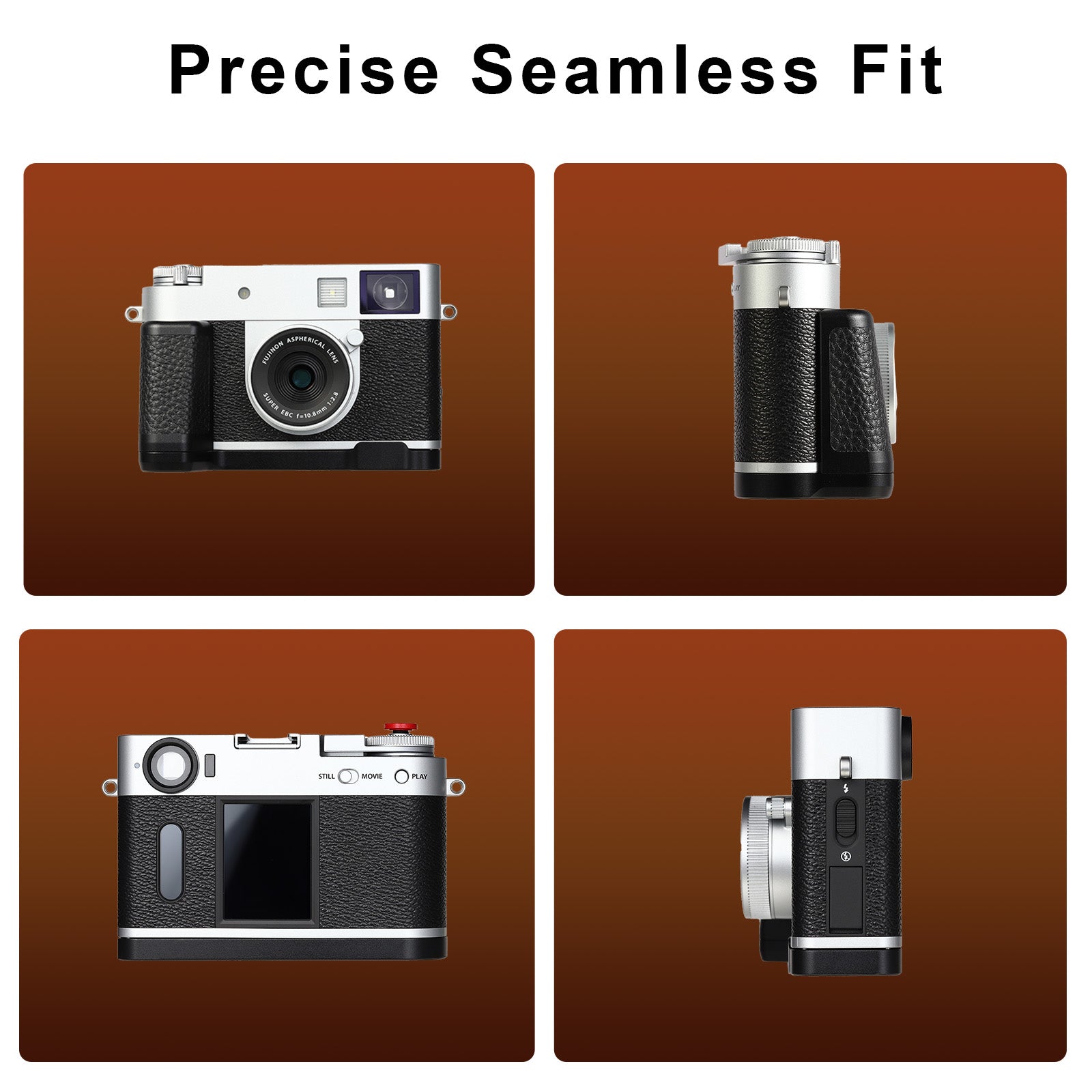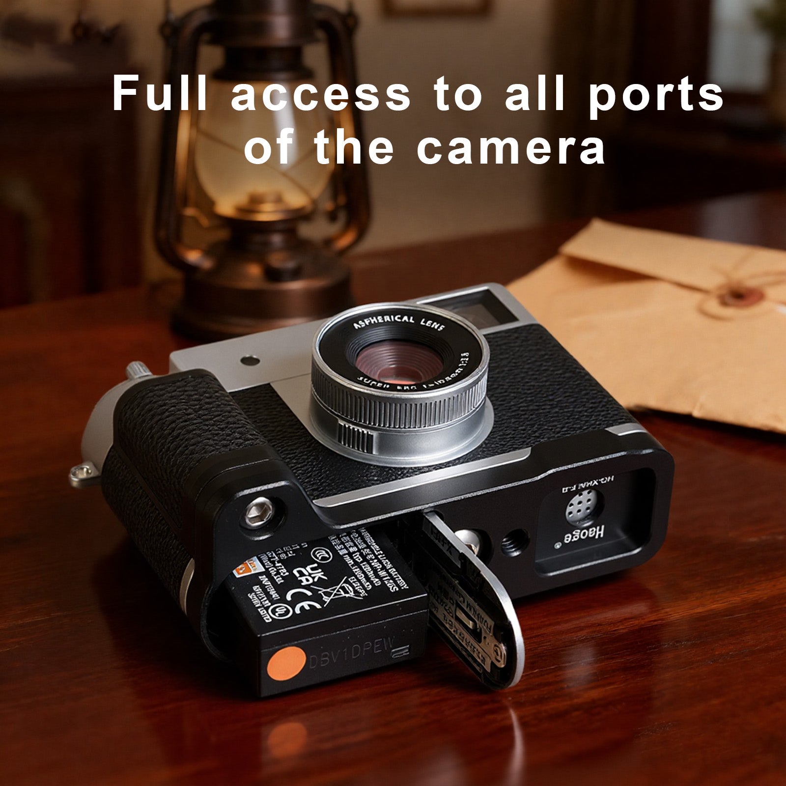 The Haoge X-half Camera Hand Grip specifically designed for Fujifilm x half Camera. It can easily be screwed on the x half Camera and enables a better grip, offering a more secure hold for shooting with your Camera. The shape and the textured surface give you more to hold onto, so you can enjoy better handling and a more solid hold.