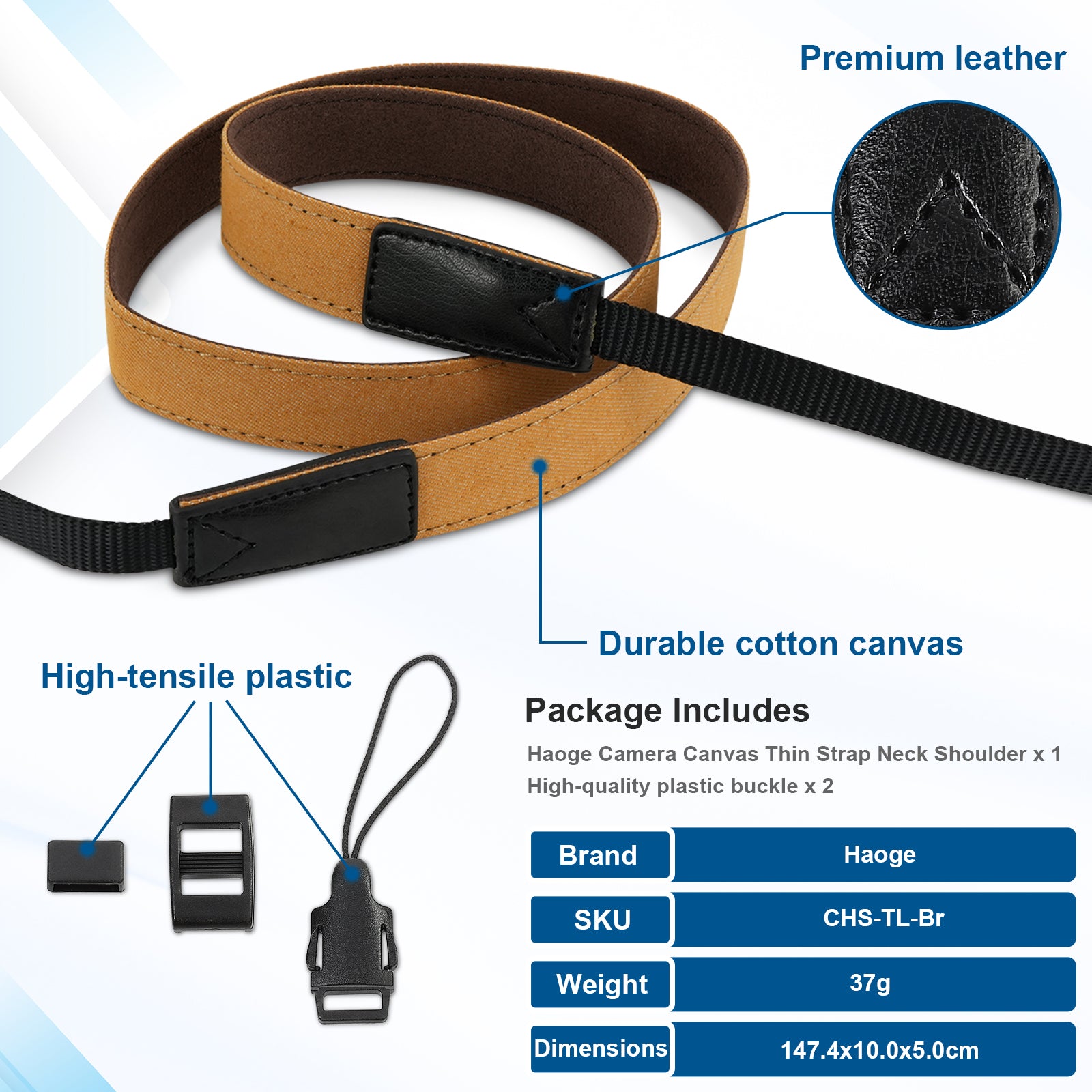 Haoge Camera Canvas Thin Strap Neck Shoulder for Binoculars,monoculars,Mirrorless or DSLR Camera,Rangefinders Tools,Bags,Adjustable long Cotton Strap (Brown)