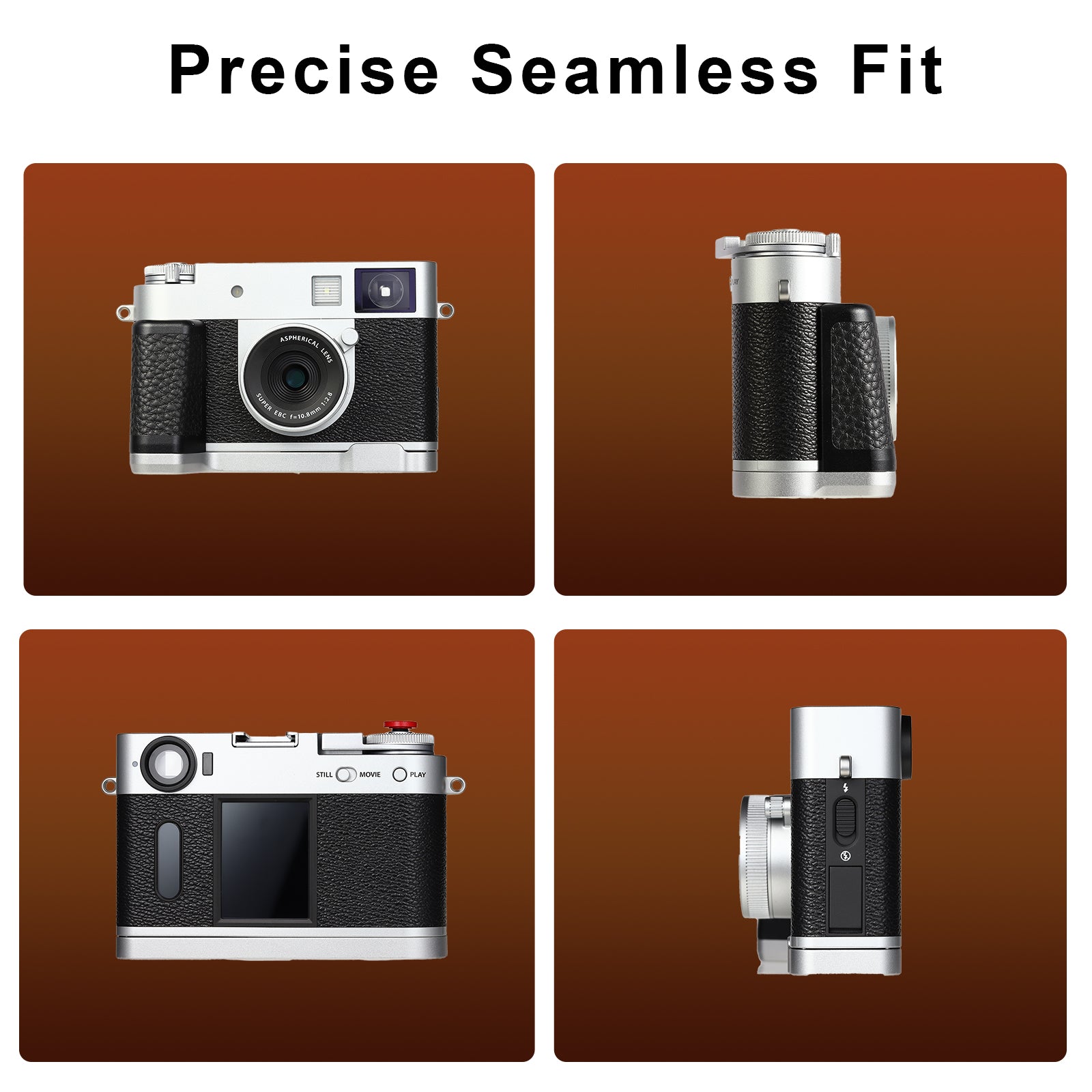 The Haoge X-Half Camera Hand Grip specifically designed for Fujifilm x half Camera. It can easily be screwed on the x half Camera and enables a better grip, offering a more secure hold for shooting with your Camera. The shape and the textured surface give you more to hold onto, so you can enjoy better handling and a more solid hold.