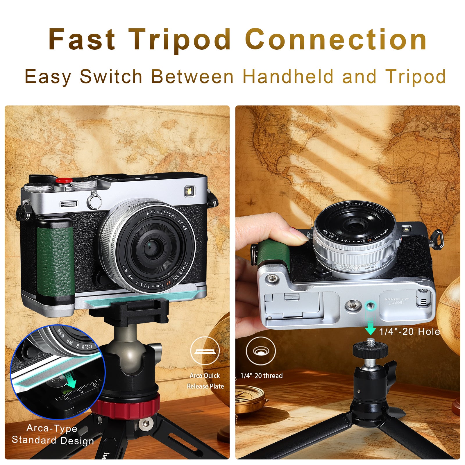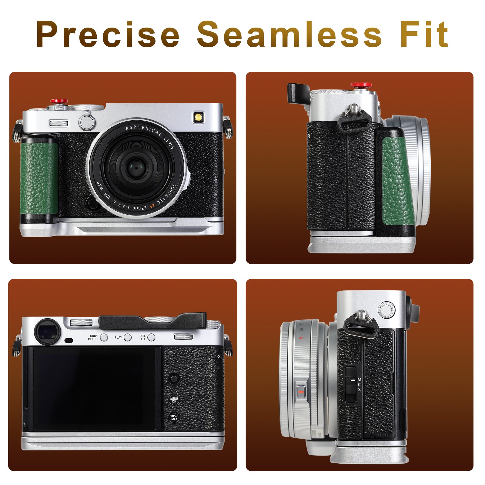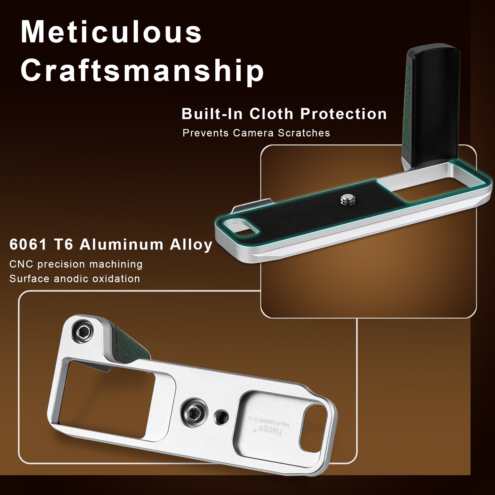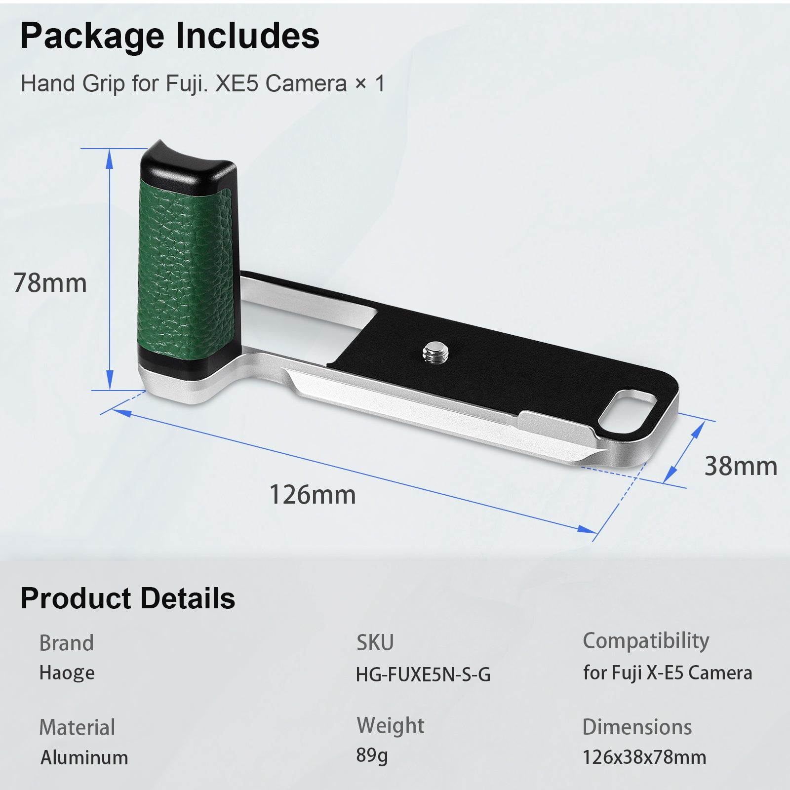 Haoge Handle Leather HandGrip for Fujifilm X-E5 Camera Body L-Shape Grip Bracket Silver With Arca-Swiss standard Plate HG-FUXE5N-S-G Green