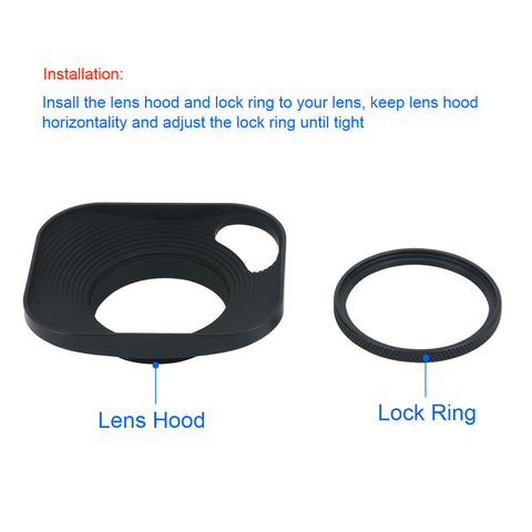 | The Haoge 39mm Square Metal Screw-in Lens Hood with Hollow Out Designed and Metal Cap are specially designed for the lens with 39mm filter size. Features: 39mm Square Metal Screw-in Lens Hood with Cap. With screw mount can be attached to all 39mm lens or filter thread. Designed to minimize lens flare by deflecting stray light from entering lens. Provide additional protection to the camera and lens from accident scratching. Come with metal Cap. Hollow Out Designed. Specification: Brand: Haoge Model: LH-B39P Thread: 39mm Material: Metal Color: Black Compatible with: 39mm Filter Thread Lenses of Canon, Nikon, Sony, Minolta, Pentax, Olympus, Panasonic, Leica, Zeiss, Contax... How to Install: 1. Screw the lens hood and lock ring clockwise into the thread to the end, don't have to tighten it. 2. Rotate lens hood and lock ring anticlockwise, until lens hood horizontality. 3.Keep lens hood horizontality, and rotate the lock ring clockwise until tight. How to uninstall: 1. Keep lens hood steady, and rotate the lock ring anticlockwise until to the end. 2. Rotate lens hood and lock ring anticlockwise, until they are away from the lens or filter. NOTE: the lens hood is compatible with the lenses with 39mm filter size. Please verify your camera's lens thread size before ordering. Your camera's lens thread size will be marked somewhere on the lens barrel or printed underneath your lens cap. This number is always preceded by a "Ø" (diameter) symbol. For example: Ø39 = 39mm lens thread size. Package Included: 1 x Haoge 39mm Square Metal Screw-in Lens Hood with Hollow Out Designed 1 x Metal Cap (Note: this is a Screw-in Hood, not Bayonet Hood) ![]() ![]() ![]() ![]() ![]() ![]() ![]()
