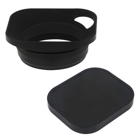 The Haoge LH-E3P Square Metal 4in1 accessory set consists of a Lens Hood with Hollow Out Designed, Lock Ring , Adapter Ring and Metal Cap. It is specially designed for the lens of the Fujifilm X70 / X100 / X100S / X100T / X100F / X100V /X100VI camera.