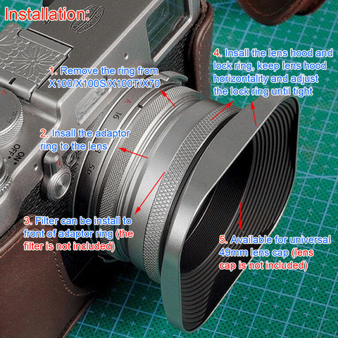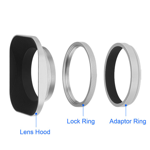 Haoge LH-EW3 Square Metal Lens Hood with 49mm Adapter Ring with Cap for Fujifilm Fuji FinePix X100 X100S X100T X100F X70 X100V X100VI Camera Replaces Fujifilm LH-X100 AR-X100 LH-X70 Silver