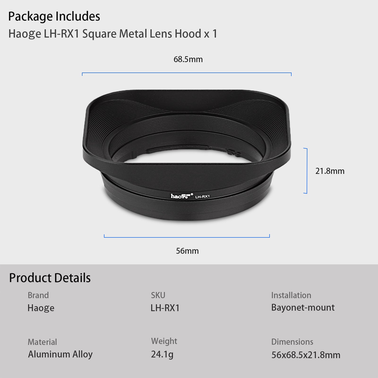 Haoge LH-RX1 Square Metal Bayonet Lens Hood Shade for Sony Carl Zeiss Sonnar T* FE 35mm F2.8 ZA,FE 55MM F1,8 ZA, FE 24mm F1.8 ZA Lens