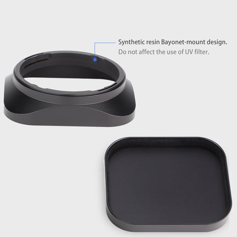 The LH-SM23+Cap-HG-13B Square Metal Lens Hood is designed for Sigma 23mm F1.4 DC DN Lens. This bayonet-mount lens hood shades the lens from stray light, prevent or limit lens flare, improving your contrast and image quality. Provide additional protection to the camera and lens from accident scratching.
