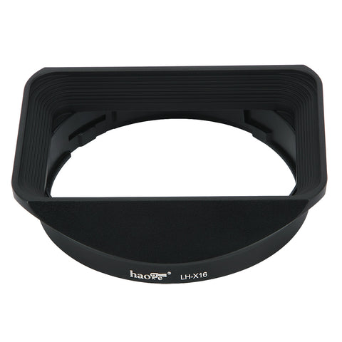 The LH-X16 Square Metal Lens Hood is designed for Fujifilm XF 16mm F1.4 R WR. This bayonet-mount lens hood shades the lens from stray light, prevent or limit lens flare, improving your contrast and image quality. Provide additional protection to the camera and lens from accident scratching.