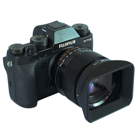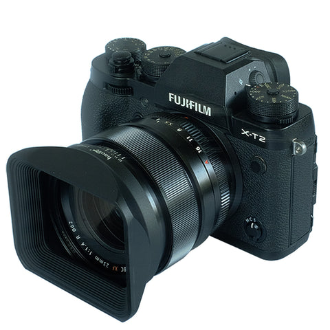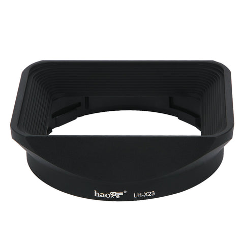 The LH-X23 Square Metal Lens Hood is designed for Fujifilm XF 23mm F1.4 R, XF 56mm F1.2 R and XF 56mm F1.2 R APD. This bayonet-mount lens hood shades the lens from stray light, prevent or limit lens flare, improving your contrast and image quality. Provide additional protection to the camera and lens from accident scratching.