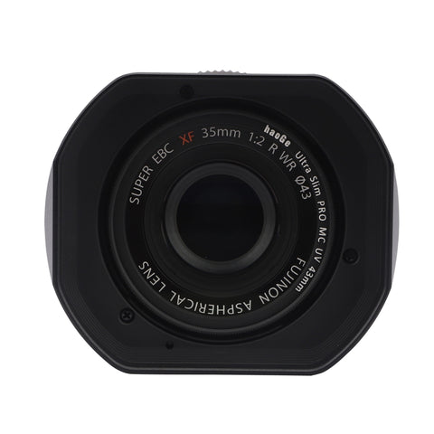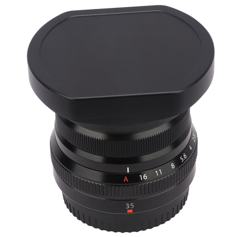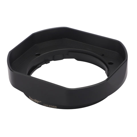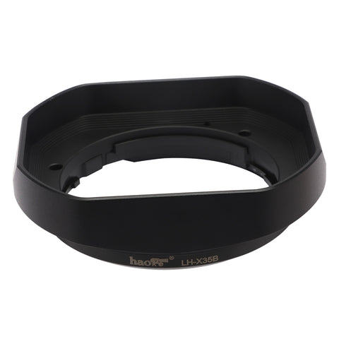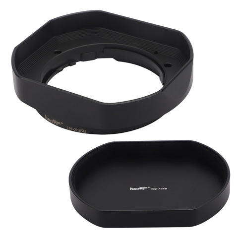 The LH-X35B Square Metal Lens Hood With Metal Cap Kit is designed for Fujifilm XF 35mm f2 R WR , XF 23mm f2 R WR and XC 35mm F2 lens. This bayonet-mount lens hood shades the lens from stray light, prevent or limit lens flare, improving your contrast and image quality. Provide additional protection to the camera and lens from accident scratching. Features: Helps block stray light and reflections. Provides greater protection to lens. Durable anodized aluminum construction. Non-glare matte finish prevents reflections. Synthetic resin Bayonet-mount design. Original Fujifilm lens cap can be mount onto the lens. Do not affect the use of UV filter. Replaces Fujifilm LH-XF35-2. Specification: Brand: Haoge Model: LH-X35B+Cap-X35B Material: Aluminum alloy Color: Black Compatible with Lens: Fujifilm Fujinon XF 35mm f2 R WR ( XF35mmF2 R WR ) Fujifilm Fujinon XF 23mm f2 R WR ( XF23mmF2 R WR ) Fujifilm Fujinon XC 35mm F2 ( XC35mmF2 ) Package included: 1 x Haoge LH-X35 Square Metal Lens Hood 1 XHaoge Cap-X35B Metal Cap