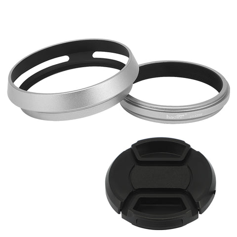 Haoge LH-X53W 3in1 Lens Hood with Adapter Ring with Cap Set for Fujifilm Fuji FinePix X70 X100 X100S X100T X100F X100V Camera Silver replaces Fujifilm LH-X100