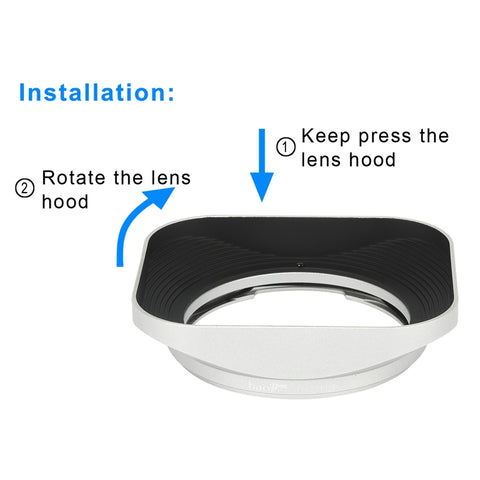 The LH-ZM33P Silver Square Metal Lens Hood with Hollow Out Designed compatible with Carl Zeiss Distagon T* 1.4/35 35mm f1.4 ZM Lens. This bayonet-mount lens hood shades the lens from stray light, prevent or limit lens flare, improving your contrast and image quality. Provide additional protection to the camera and lens from accident scratching.