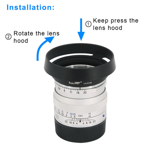 Haoge LH-ZV05 Round Metal Lens Hood for Carl Zeiss Biogon T* 2/35 35mm f2 ZM, C Biogon T* 2.8/35 35mm f2.8 ZM, Planar T* 2/50 50mm f2 ZM; Voigtlander NOKTON CLASSIC 35mm f1.4 I&II VM, 40mm f1.4 VM;50mm f/1.5 Aspherical II VM Lens