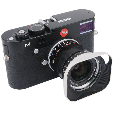 The Haoge LH-ZV06P Silver Square Metal Lens Hood with Hollow Out Designed compatible with Carl Zeiss ZM 2.8/21, 4.5/21, 2.8/25, 2.8/28, 1.5/50 Lens. This bayonet-mount lens hood shades the lens from stray light, prevent or limit lens flare, improving your contrast and image quality. Provide additional protection to the camera and lens from accident scratching.