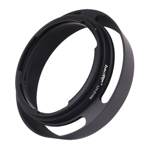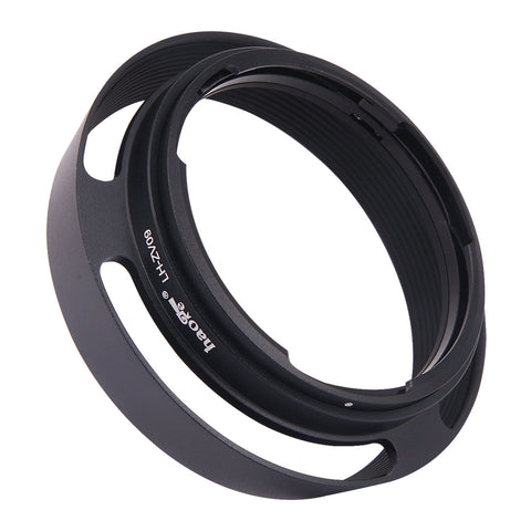 The Haoge LH-ZV09 Black Round Metal Lens Hood is designed for Carl Zeiss ZM 4.5/21, 2.8/25, 2.8/28, 1.5/50 Lens. This bayonet-mount lens hood shades the lens from stray light, prevent or limit lens flare, improving your contrast and image quality. Provide additional protection to the camera and lens from accident scratching.