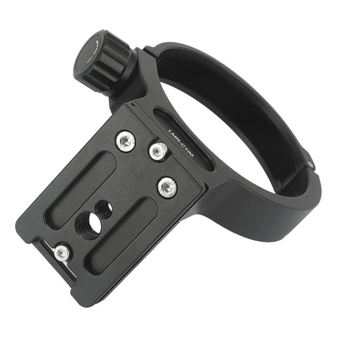 The LMR-C100 Tripod Mount Ring from Haoge is designed for Canon EF 100 mm f/2.8L Macro IS USM Lens. It features Arca-compatible dovetail which allow you attach your lens to Ball Head, Clamp or Panorama Head of Arca-Swiss standard. Reserved 1/4" and 3/8" screw holes at the bottom for attach lens to tripod directly. Built-in strap hole for carry. Quick Release System Designed with Arca-compatible dovetail, photographer could set up camera and lens quickly. Improves Lens Balance The ring secures your lens to the camera's tripod. Thumbscrews Tighten And Loosen Ring Having thumbscrews control the ring make it easy to adjust the tripod ring on the go. Gives Your Camera Setup Better Balance The ring adds stability to your camera and lens. Due to its weight, when the lens is mounted with a camera on a tripod, the center of gravity is shifted to the lens. The ring attaches to the tripod and can be shifted to adjust the balance. Rotation Having the camera secured with a ring around the lens makes it possible to rotate the lens between landscape and portrait modes without removing the camera from the tripod. The friction thumbscrews can then be tightened to secure the camera in the desired position. Compatible with: Canon EF 100 mm f/2.8L Macro IS USM Lens ( Note: it can't be used for other lenses ) Package Included: 1 x Haoge LMR-C100 Tripod Mount Ring for Canon EF 100 mm f/2.8L Macro IS USM Lens