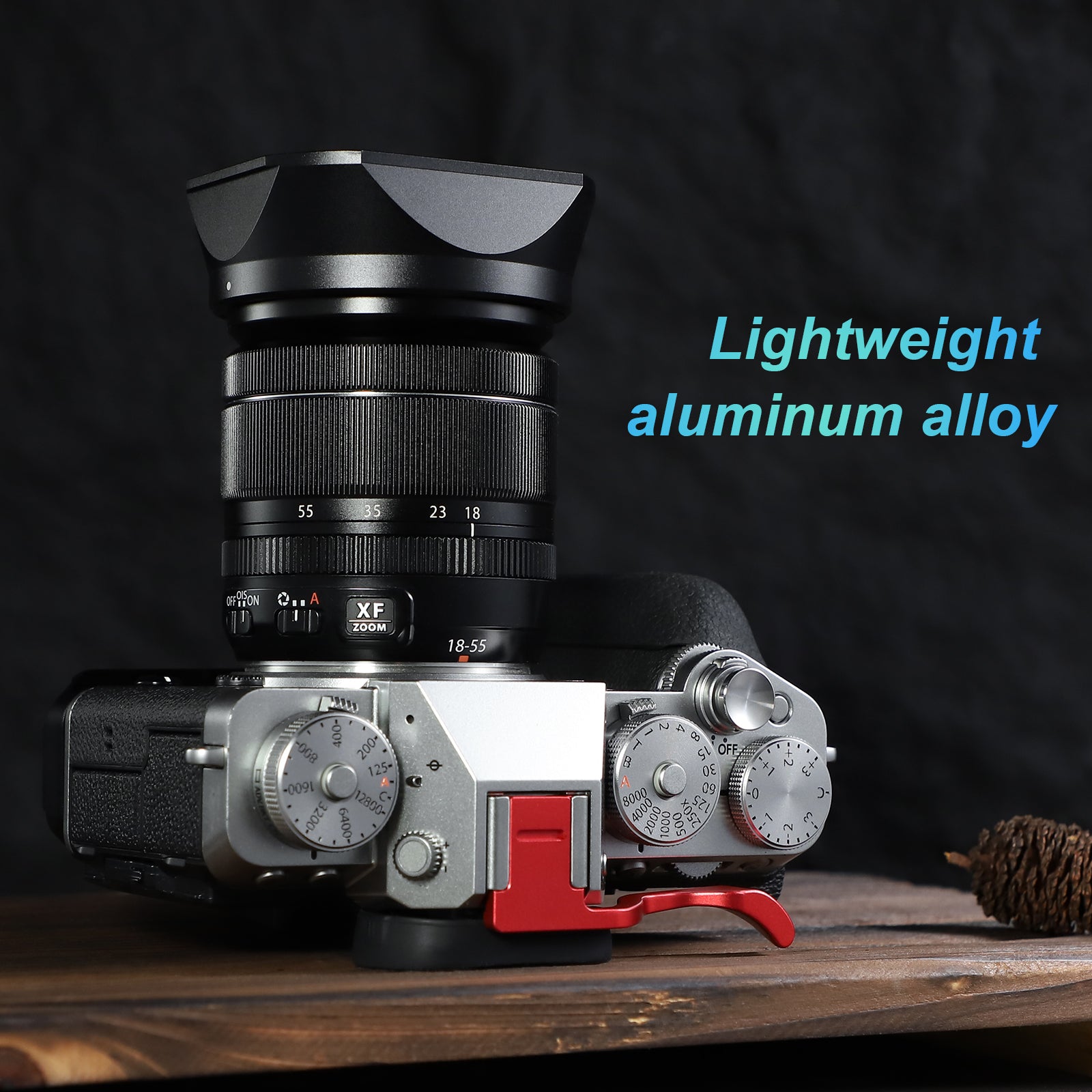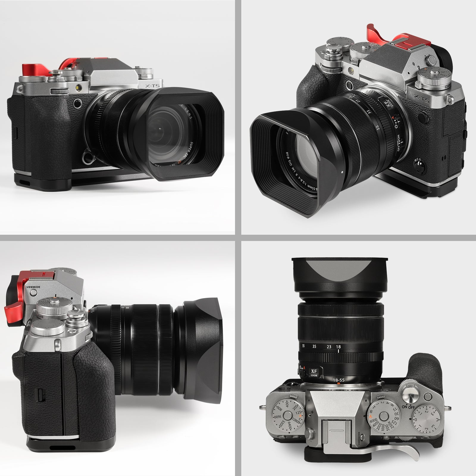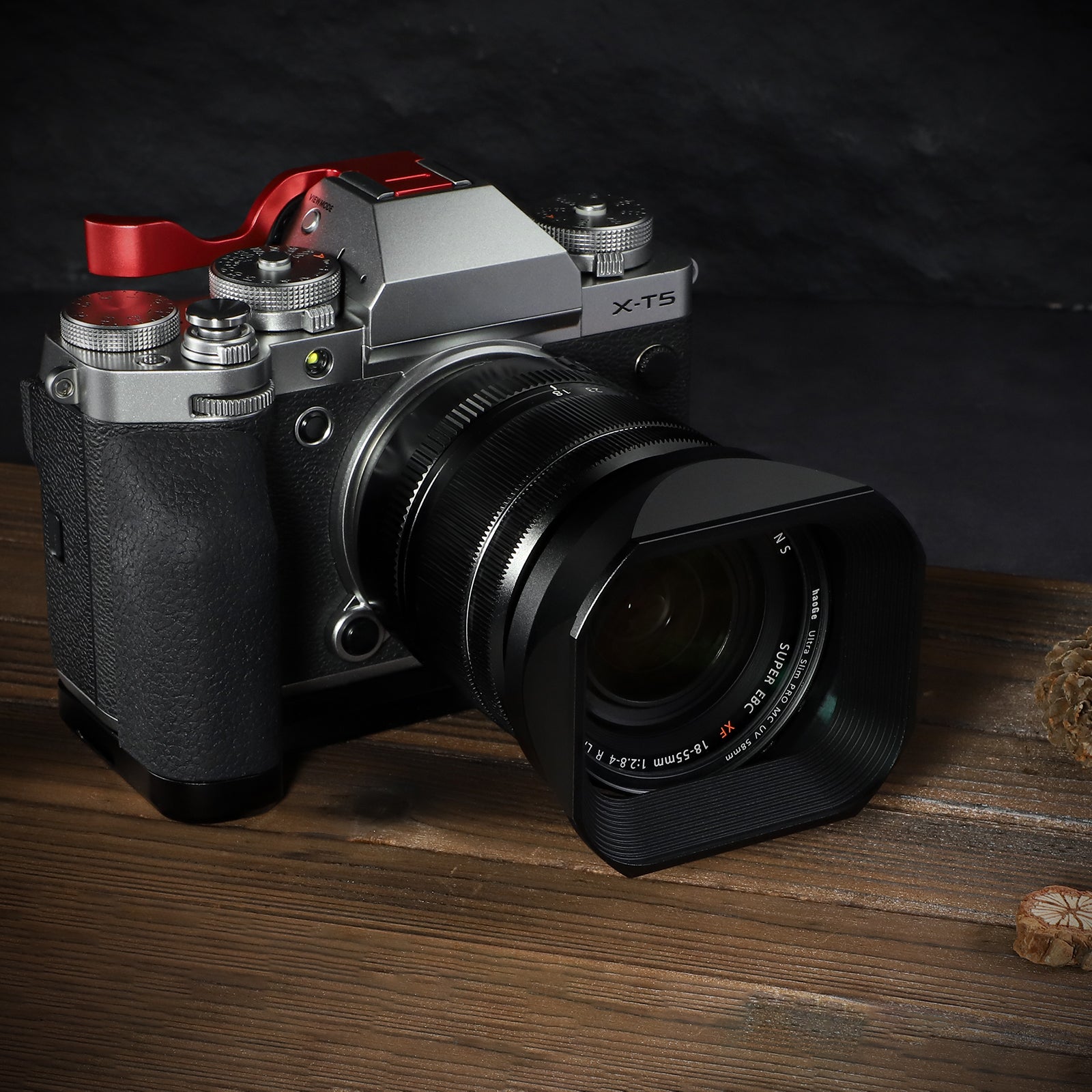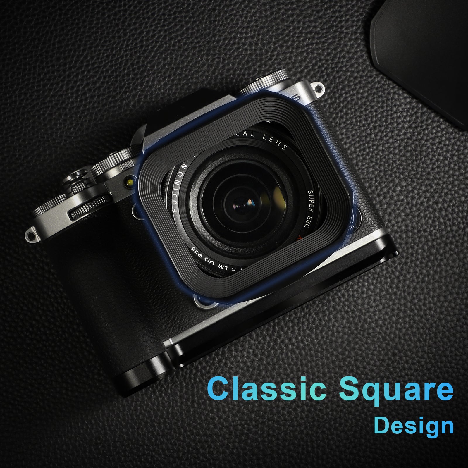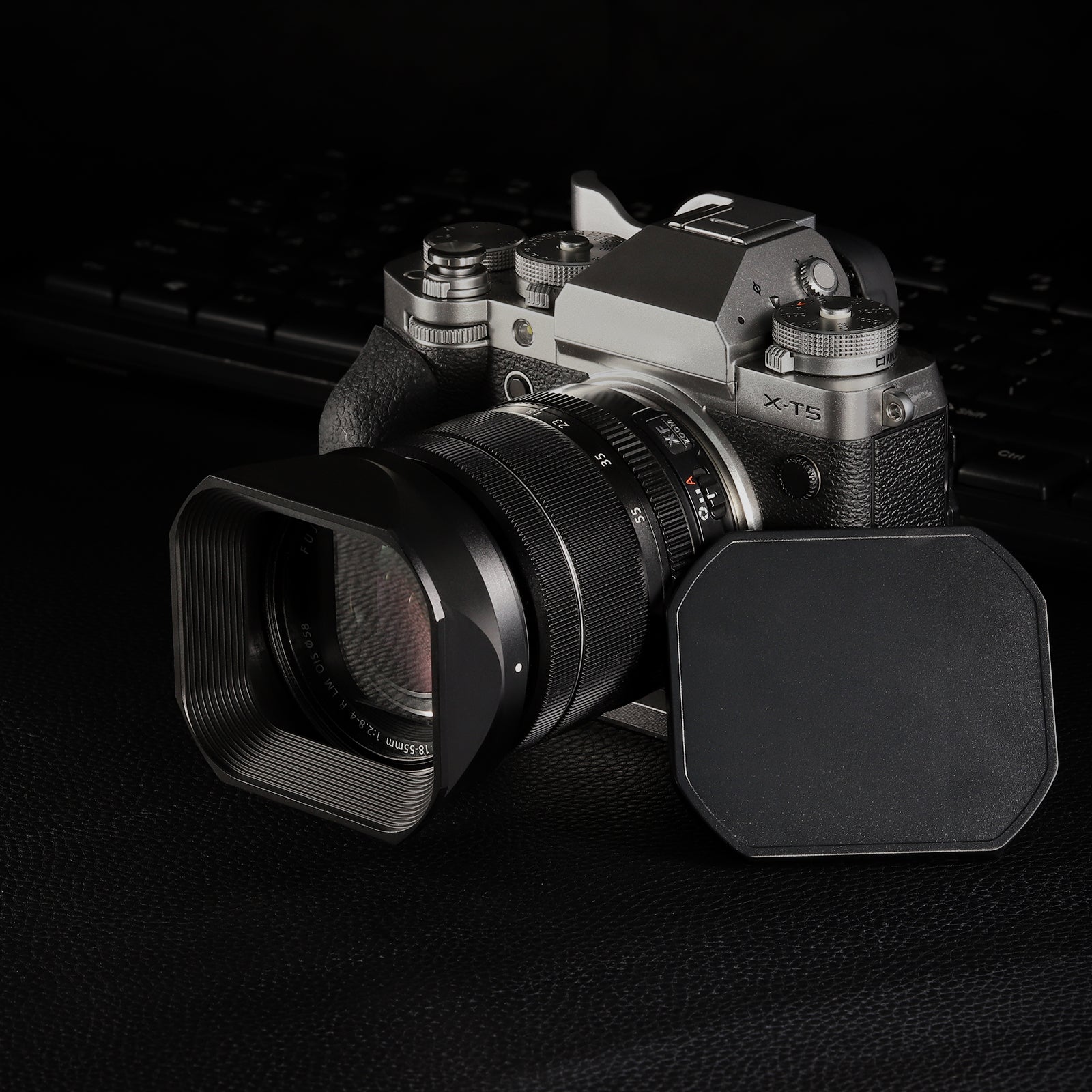 Haoge Metal Square Lens Hood for Fujifilm Fujinon XF 18-55mm F2.8-4.0 R LM OIS & XF 14mm F2.8 R lens with a Hood Cap on X-T5 X-T4 XT50 XH2 Camera