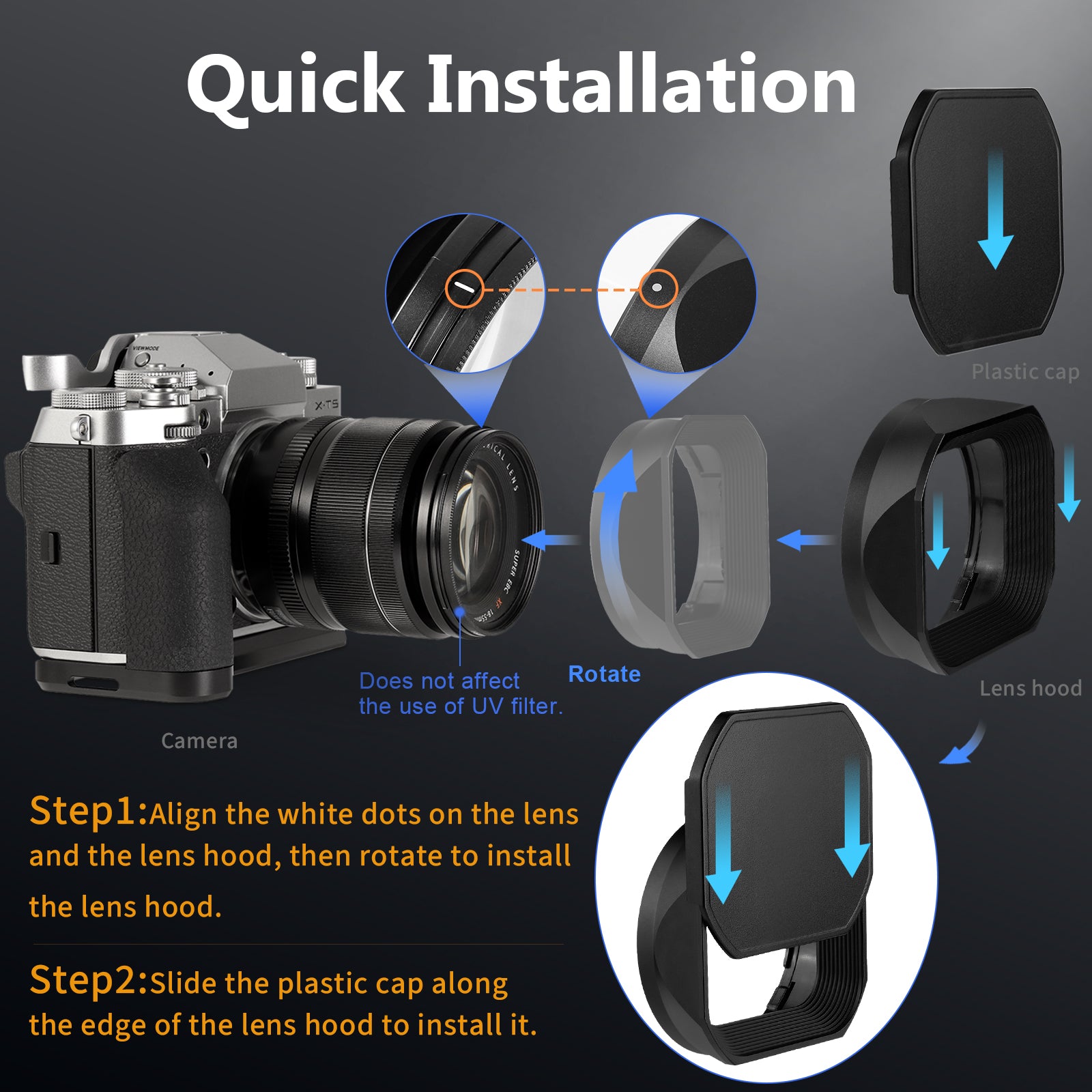 Do not affect the use of 58mm UV filter.