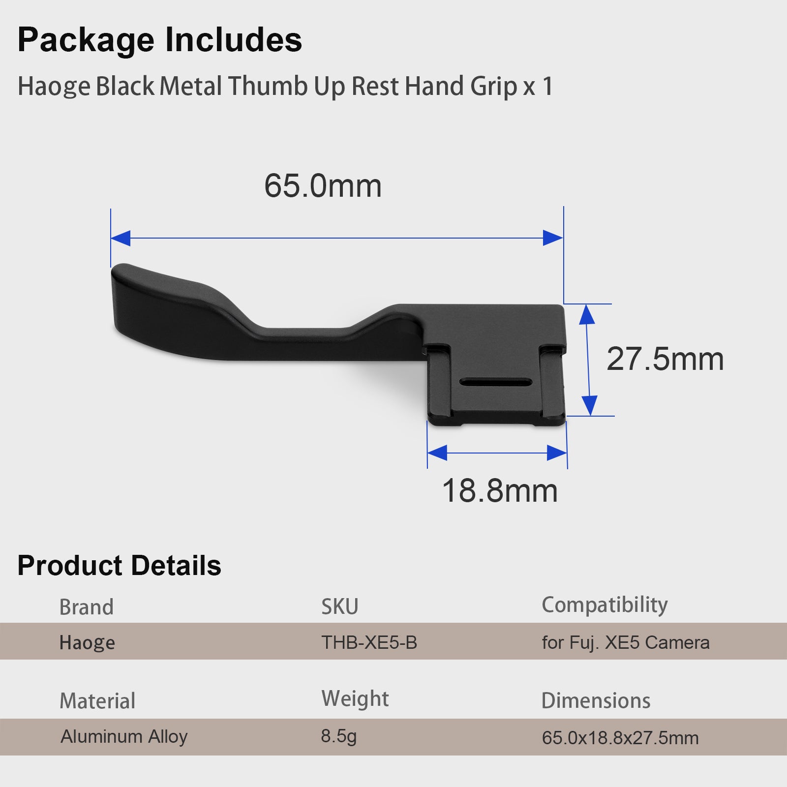 Haoge Metal Thumb Up Grip for Fujifilm XE5 Camera Digital AccessoriesTHB-XE5-B Hot Shoe Thumb Up Rest Support Handgrip Black