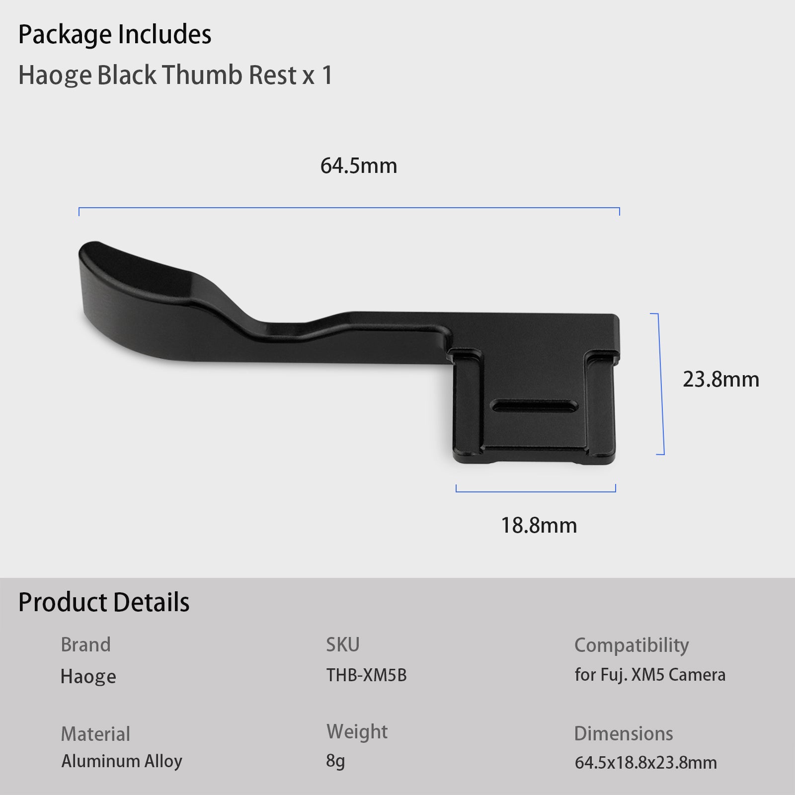 Haoge Metal Thumb Up Grip for Fujifilm X-M5 XM5 Camera Digital AccessoriesTHB-XM5B Hot Shoe Thumb Up Rest Support Handgrip Black