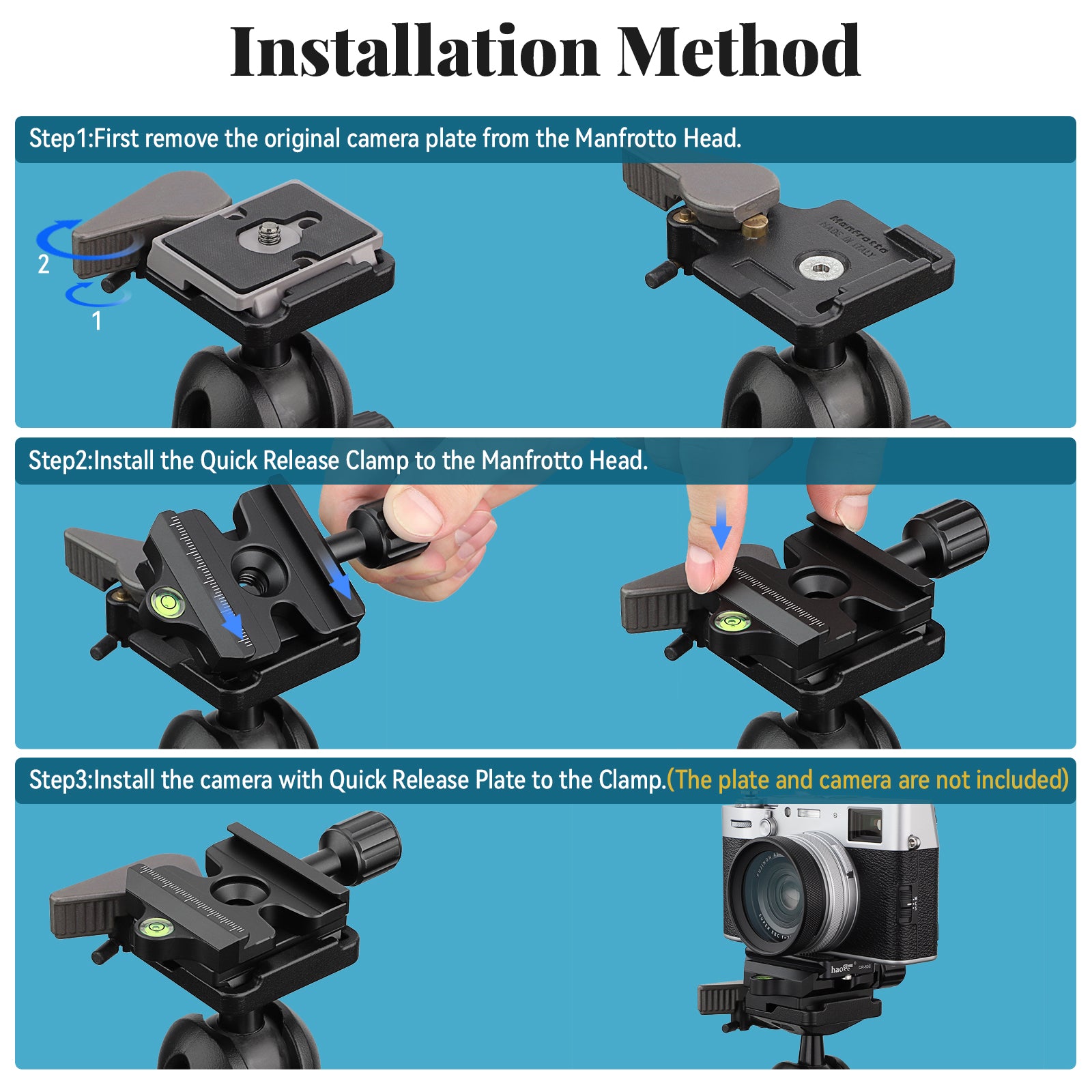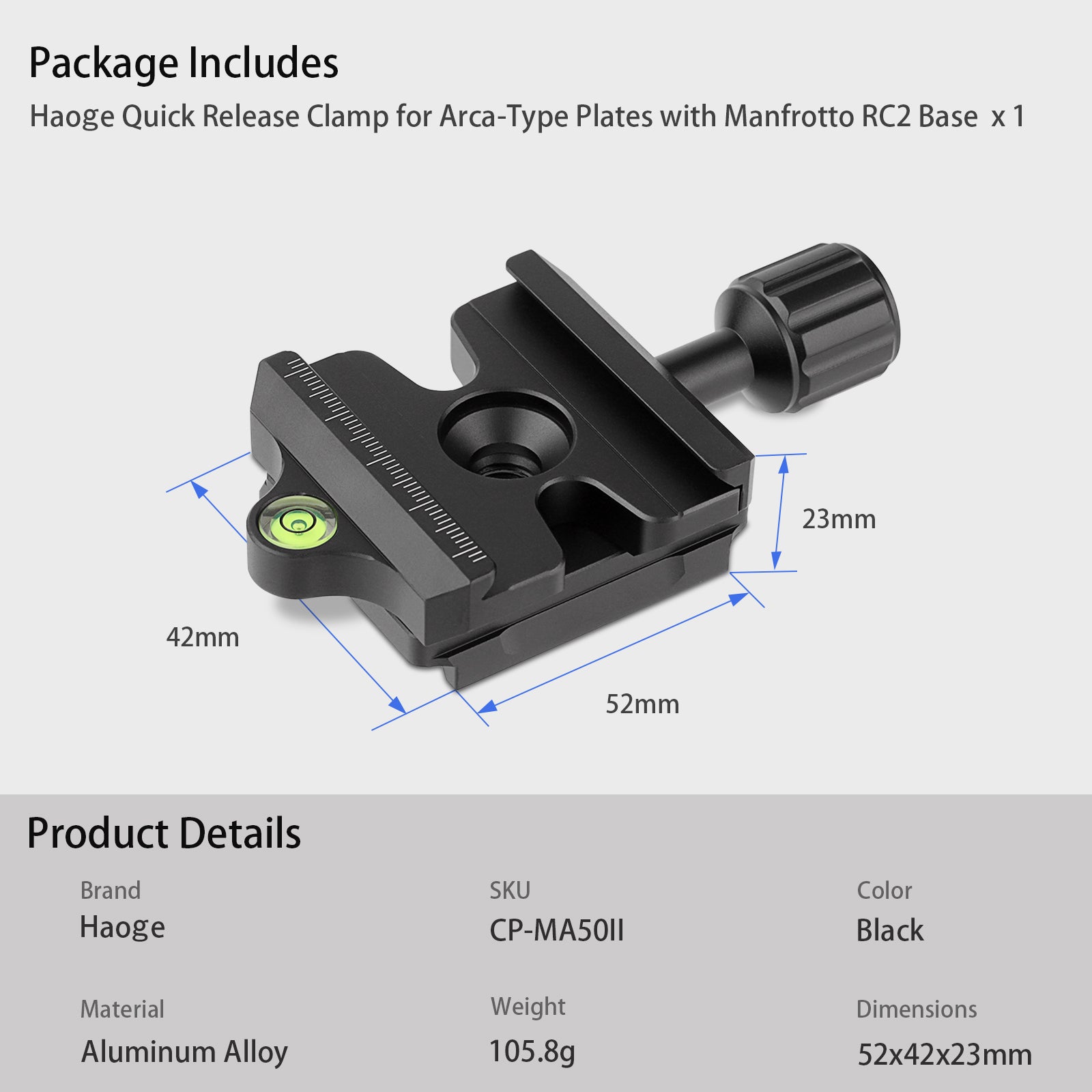 1x Haoge Quick Release Clamp for Arca-Type Plates with Manfrotto RC2 Base