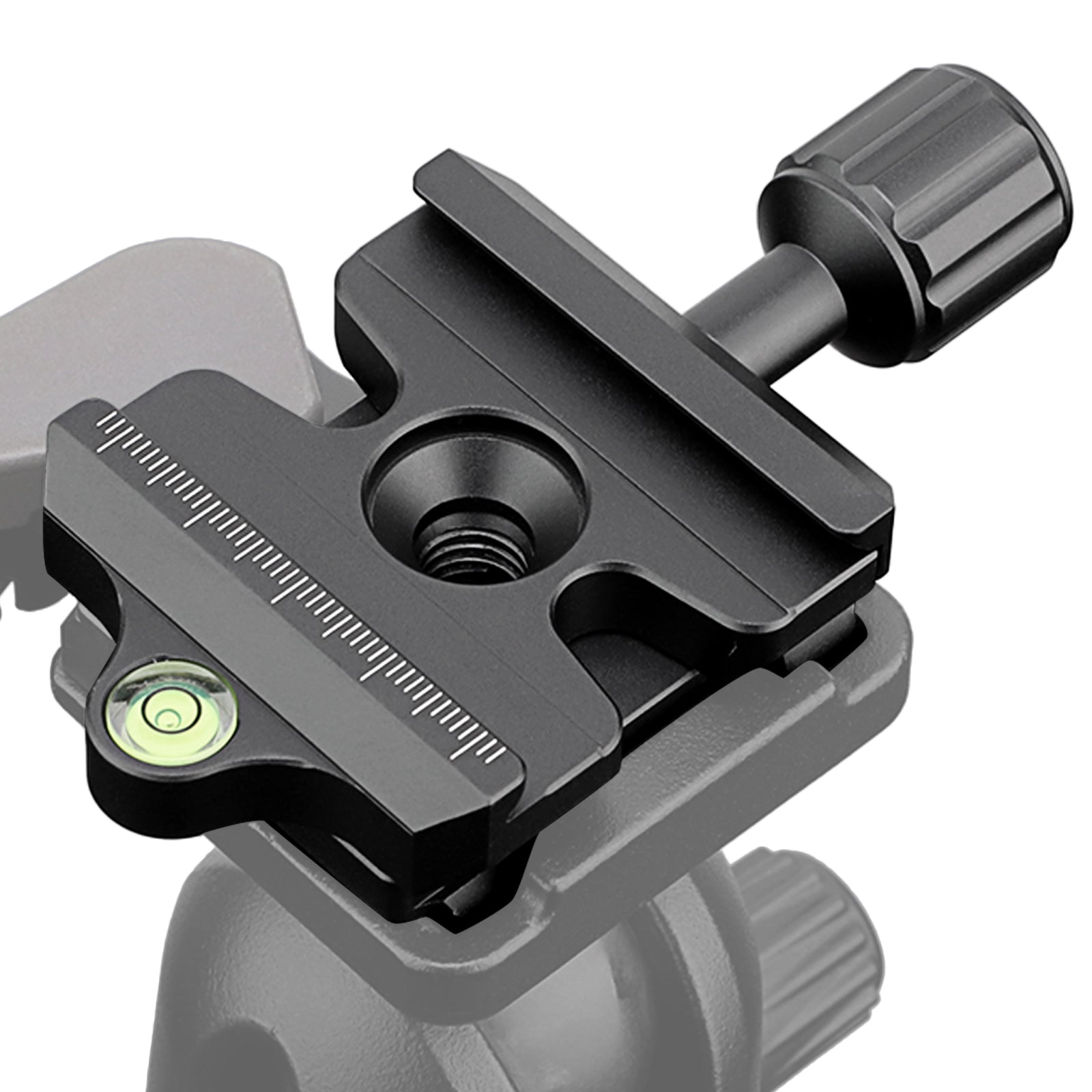 The Haoge Quick Release Clamp for Arca-Type Plates with Manfrotto RC2 Base is a specialty Arca Swiss-type clamp that features a Bogen/Manfrotto RC2 plate/base at its bottom. It allows you to add Arca-type plates to your Bogen/Manfrotto RC2 quick release system.
