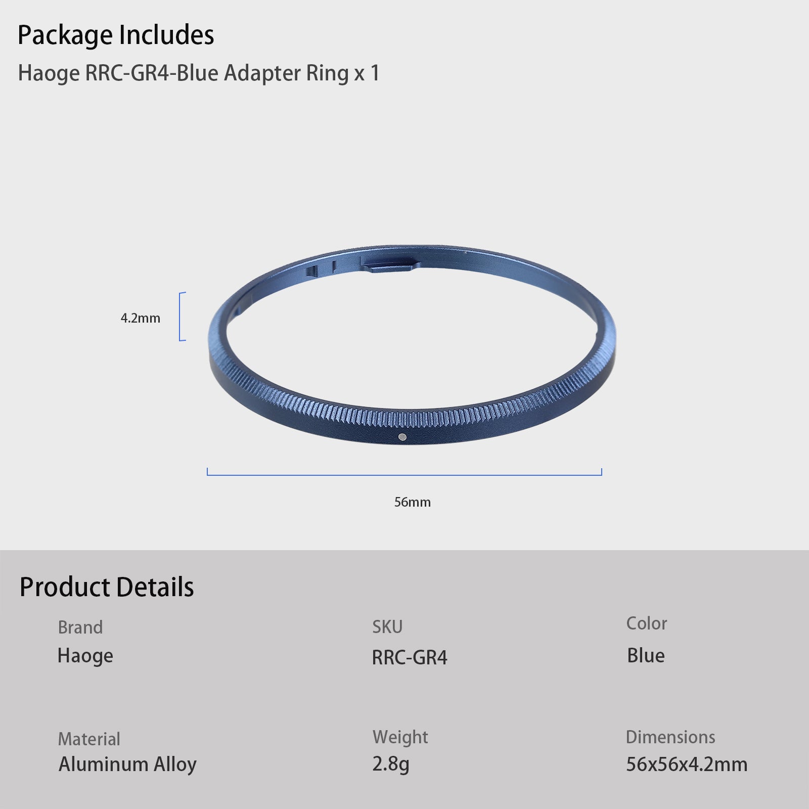 Haoge RRC-GR4-Blue Metal Decorate Ring Cap for RICOH GR IV Camera replaces GN-3