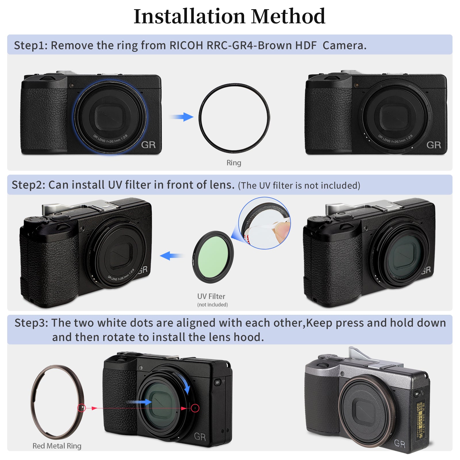 The Haoge Metal Ring Cap is designed for RICOH GR IV. It enable you to replce the original ring GN3.